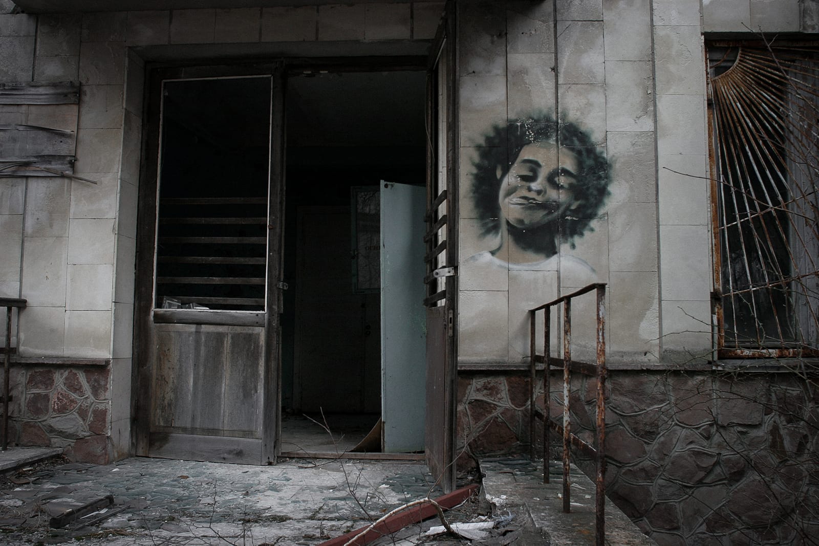 People don't live here because of radiation. However, the presence of painted human figures somehow encourages us to think that they are or were here, or perhaps only their souls remain, appearing on the walls of the ruined city, trying to communicate their thoughts and feelings.
