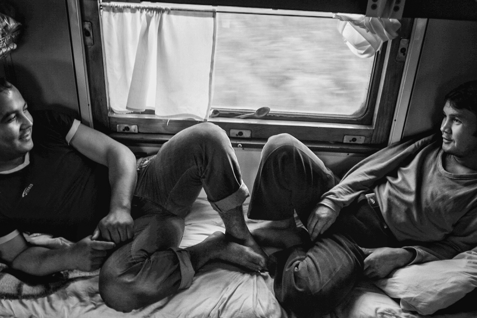 Uneasy: sleep has always seemed to me a little like death. You lie on the upper side berth in a platzkart carriage as if in a coffin, or at least in some confined and measured space, feet first in the direction of the train’s movement. At first you photograph someone from above, or someone passing by, almost for amusement. Then someone below, stretched out on a lower berth. And after that you can no longer stop. You begin to feel freer. Breathing becomes easier.
