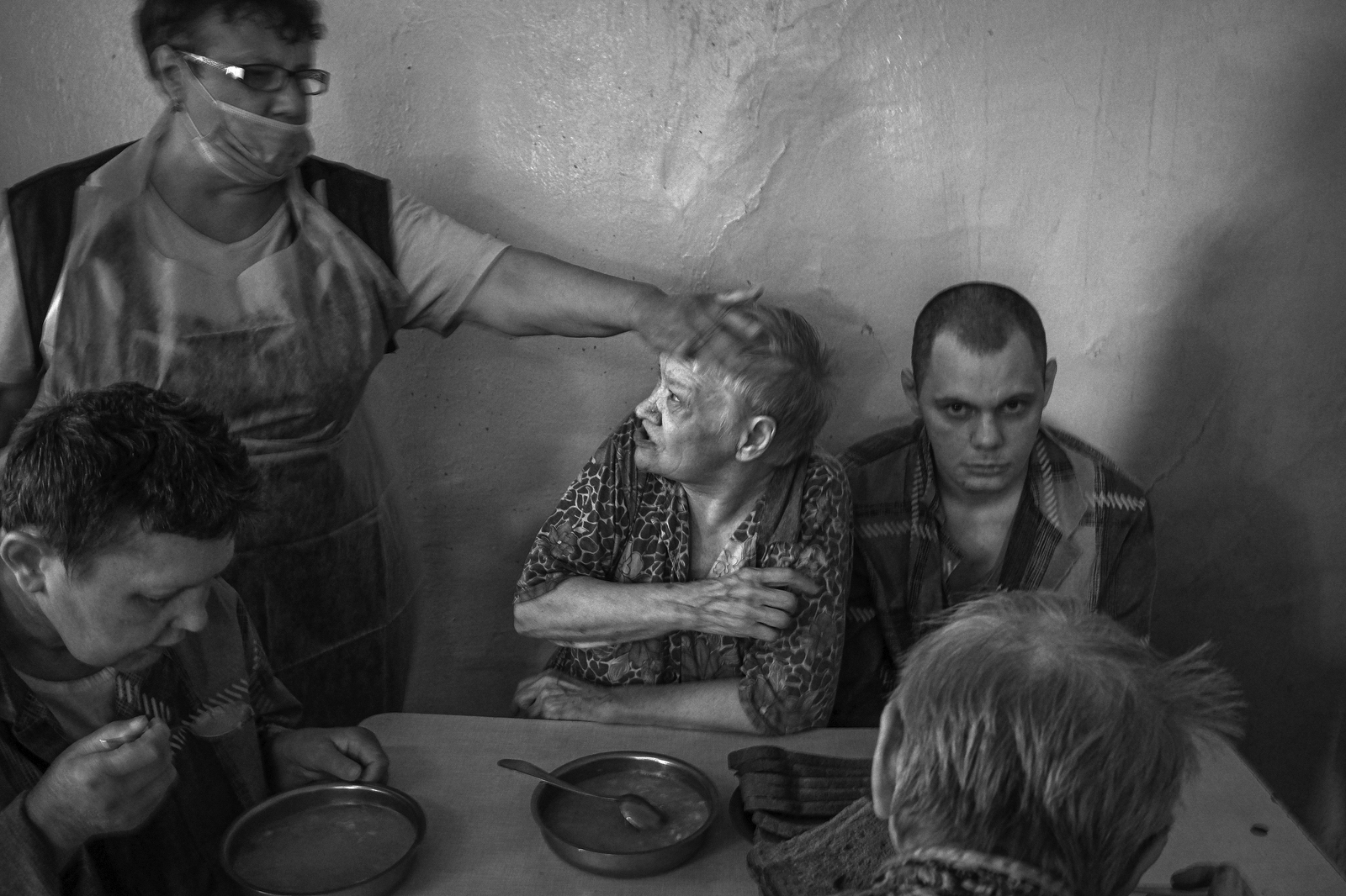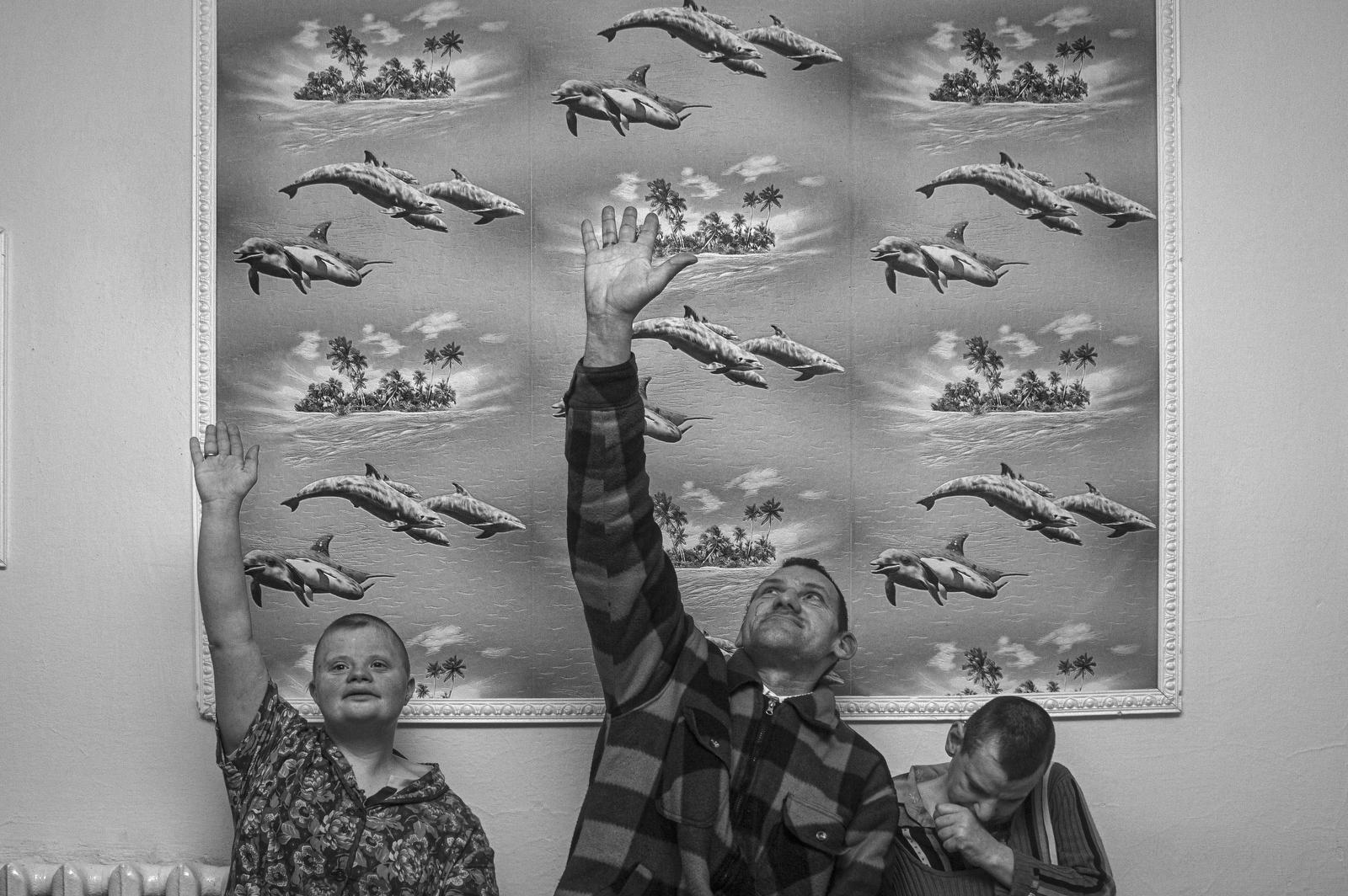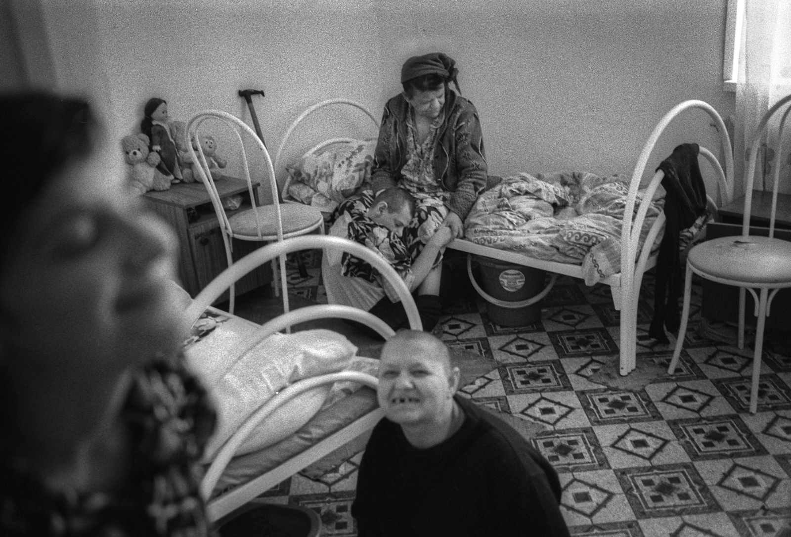 Oleg Klimov spent a total of three months in a residential psychoneurological institution (or, in Russian, a PNI). During that time, he took about 500 portraits of the PNI’s residents and learned about what life is like in some of Russia’s most closed-off, stigmatized institutions. Klimov stopped using knives and forks (only spoons were allowed in the PNI), saw a Russian Orthodox iconostasis stationed in a cafeteria, and made purchases from a store where no one ever uses cash (residents are never given their pensions in hand). While getting to know his neighbors and teaching them mathematics and photography, Klimov became convinced that the environment and the lifestyle available to any given person affects them at least as much as the individual traits they were born with.