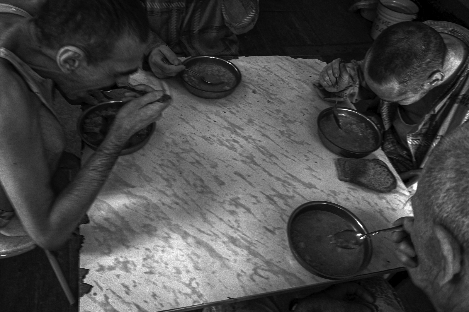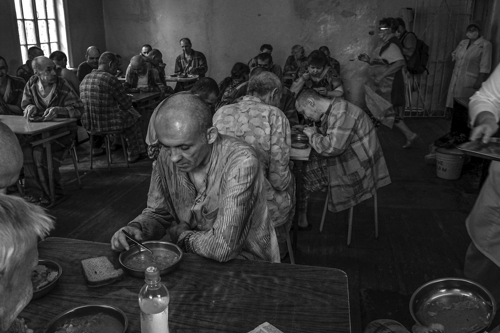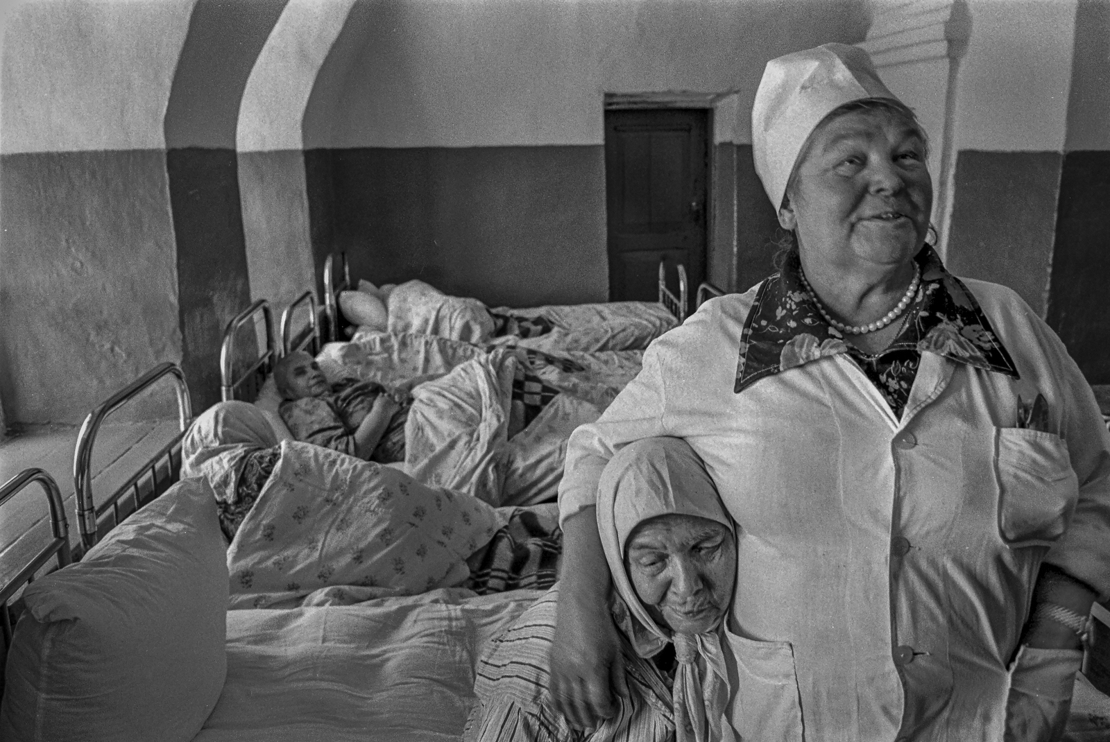 Oleg Klimov spent a total of three months in a residential psychoneurological institution (or, in Russian, a PNI). During that time, he took about 500 portraits of the PNI’s residents and learned about what life is like in some of Russia’s most closed-off, stigmatized institutions. Klimov stopped using knives and forks (only spoons were allowed in the PNI), saw a Russian Orthodox iconostasis stationed in a cafeteria, and made purchases from a store where no one ever uses cash (residents are never given their pensions in hand). While getting to know his neighbors and teaching them mathematics and photography, Klimov became convinced that the environment and the lifestyle available to any given person affects them at least as much as the individual traits they were born with.