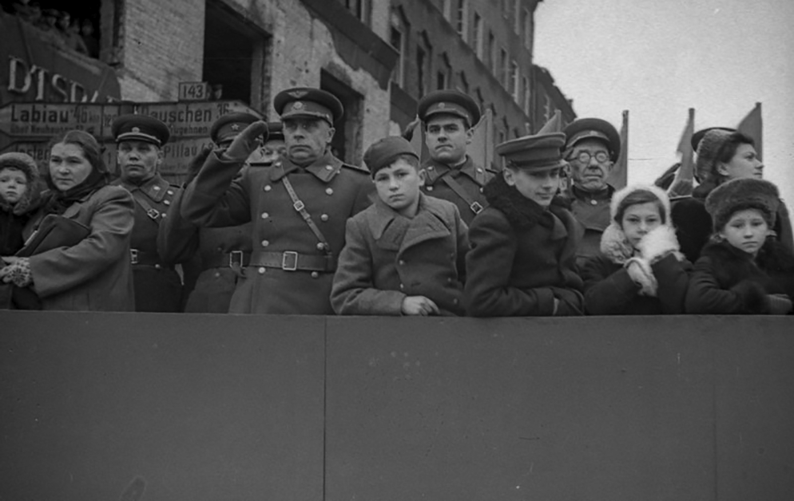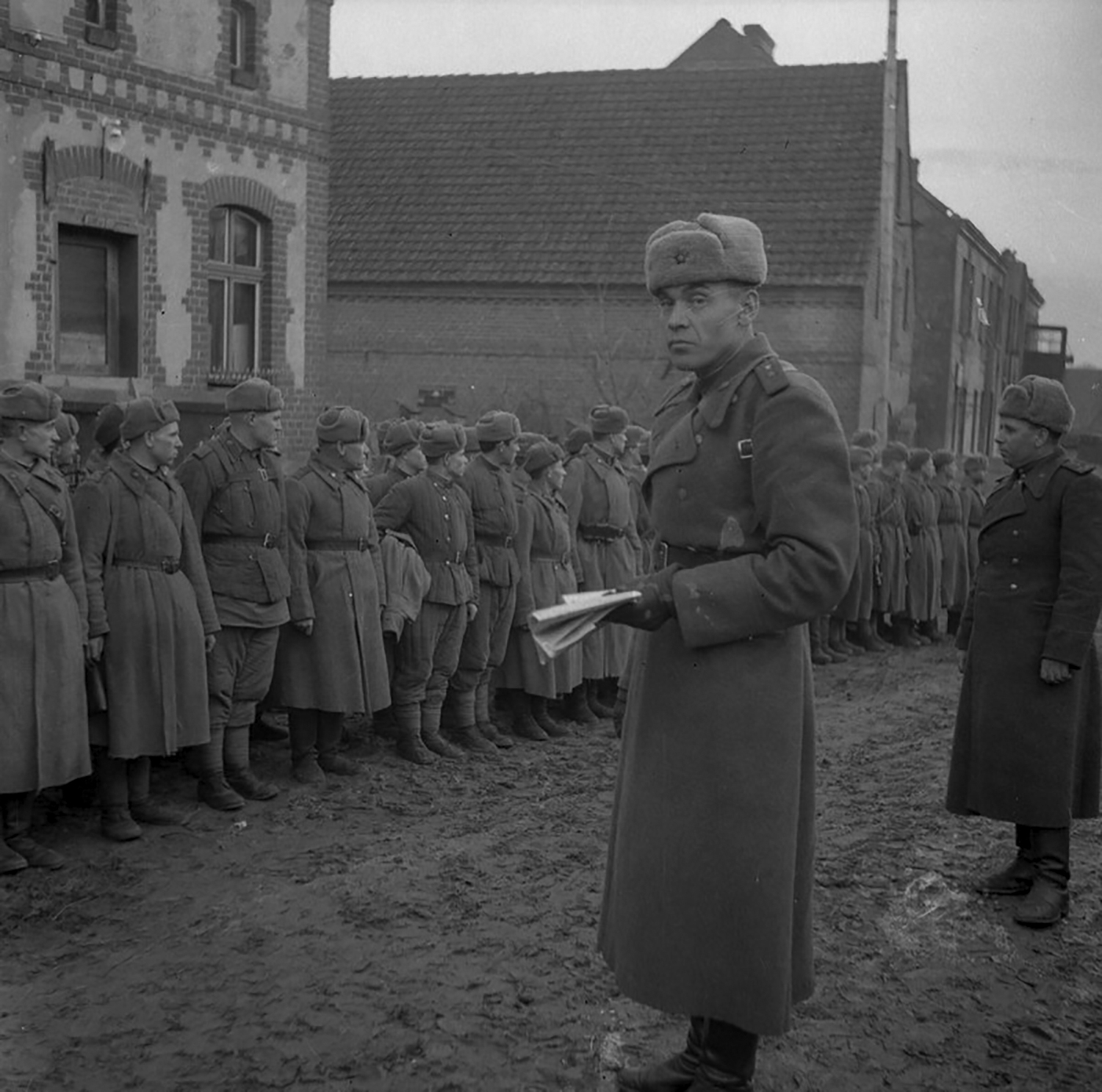 The first Soviet settlers in what was still East Prussia in 1945 were demobilized Red Army soldiers. Many were effectively kept there by order, as the first human support structure of the new Soviet territory.